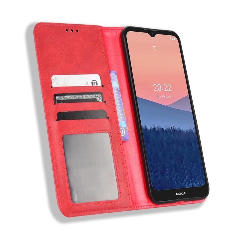 Για Nokia C21 Μαγνητική πόρπη Ρετρό Crazy Horse δερμάτινη θήκη τηλεφώνου (κόκκινο)