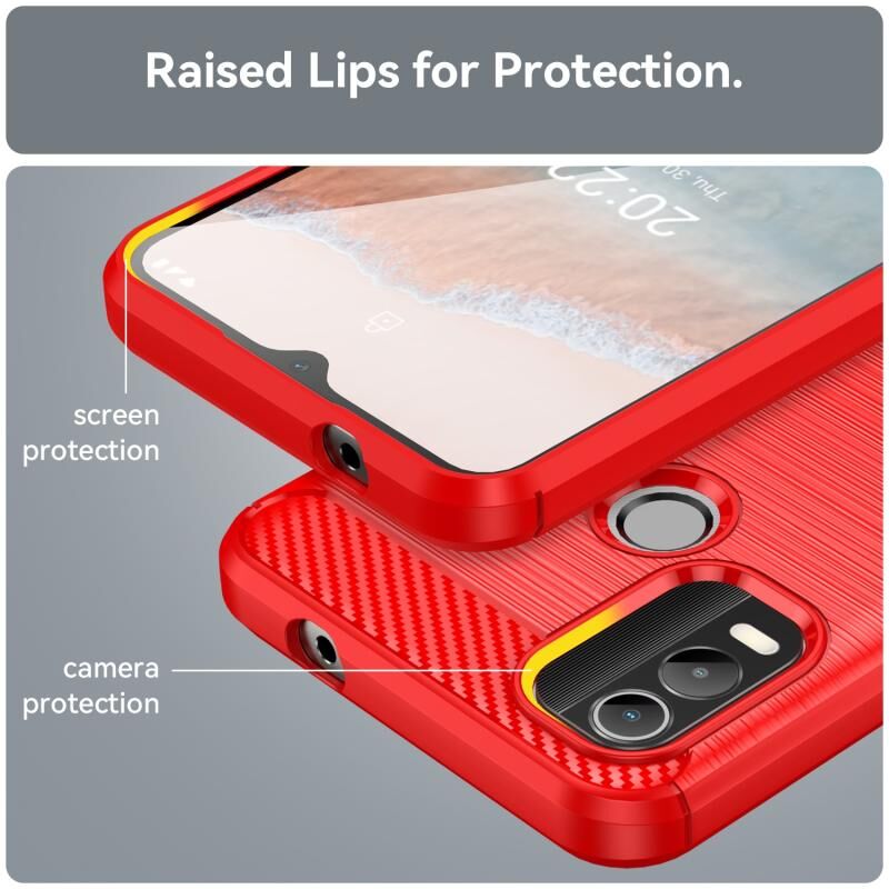 Για Nokia C21 Plus βουρτσισμένη υφή Carbon Fiber TPU υπόθεση τηλεφώνου (κόκκινο)