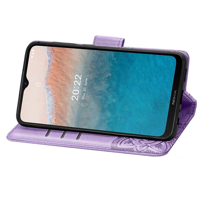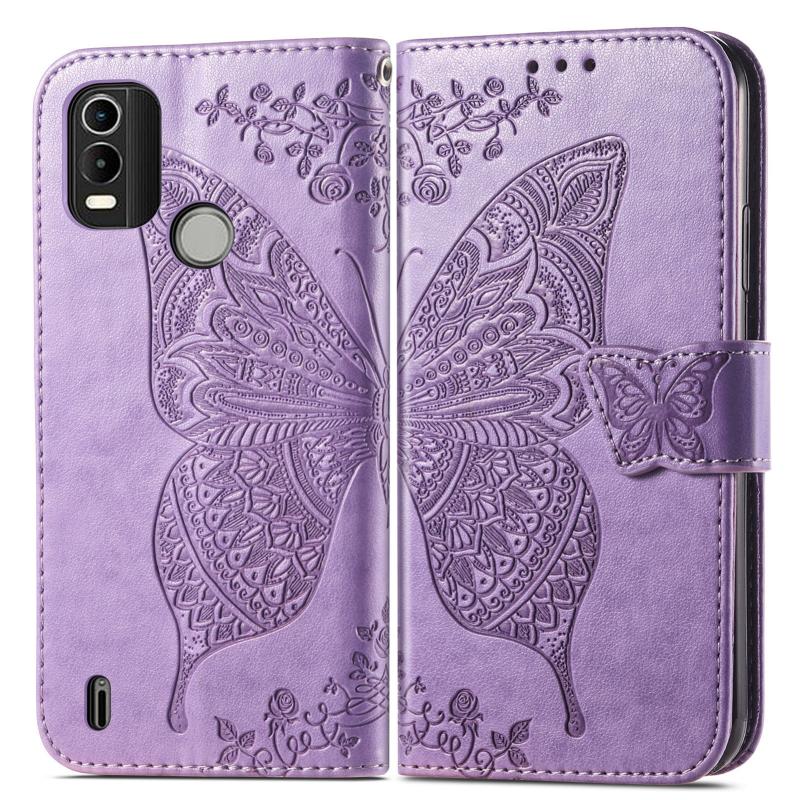 For Nokia C21 Plus Butterfly Love Flower Embossed Horizontal Flip Leather Phone Case(Light Purple)