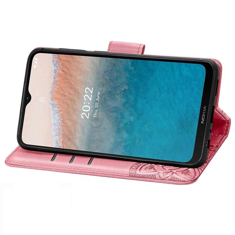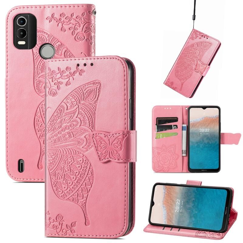Θήκη τηλεφώνου από δέρμα με οριζόντιο άνοιγμα, ανάγλυφο με σχέδιο πεταλούδας και λουλουδιών, για Nokia C21 Plus (Μαύρο)