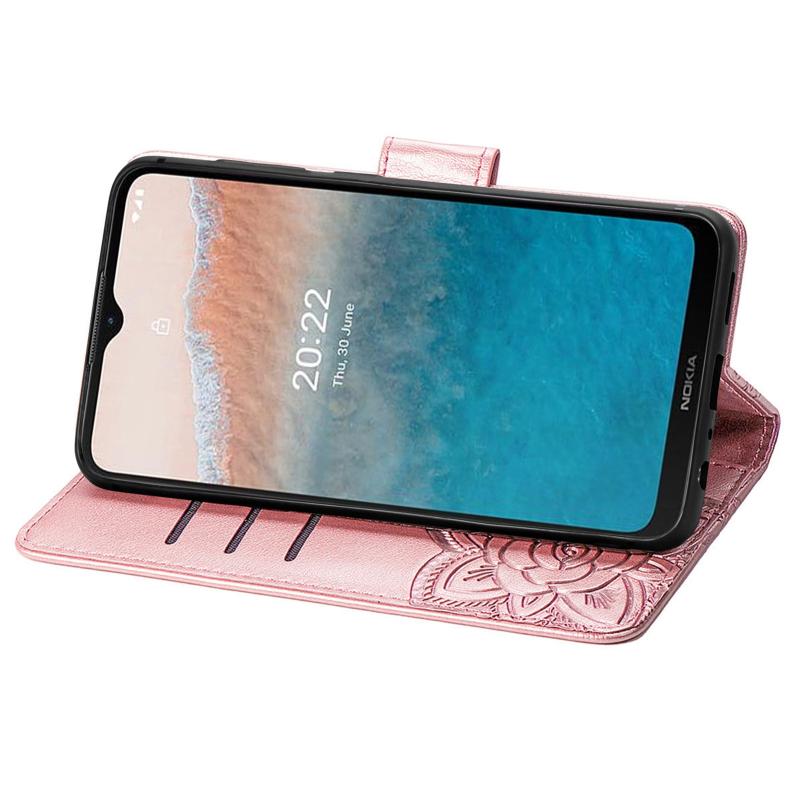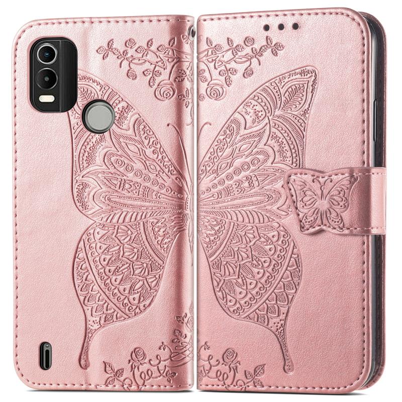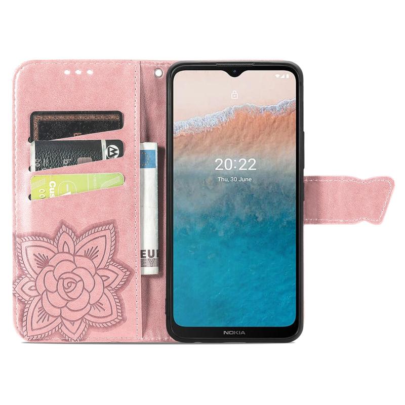 Θήκη τηλεφώνου από δέρμα με οριζόντιο άνοιγμα, ανάγλυφο με σχέδιο πεταλούδας και λουλουδιών, για Nokia C21 Plus (Μαύρο)