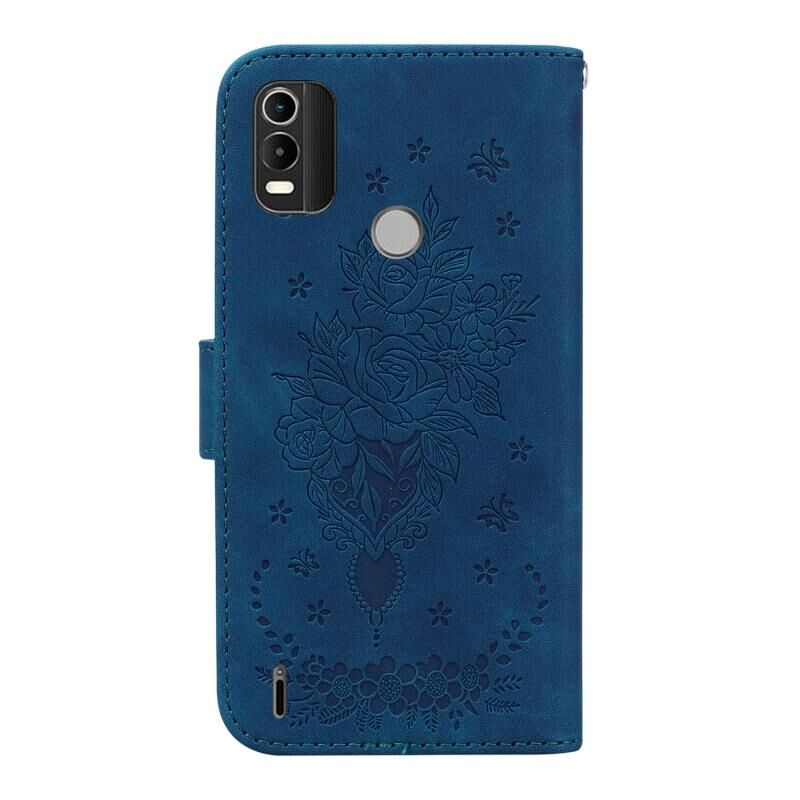 Για Nokia C21 Plus Πεταλούδα Rose ανάγλυφο δέρμα υπόθεση τηλεφώνου (μπλε)
