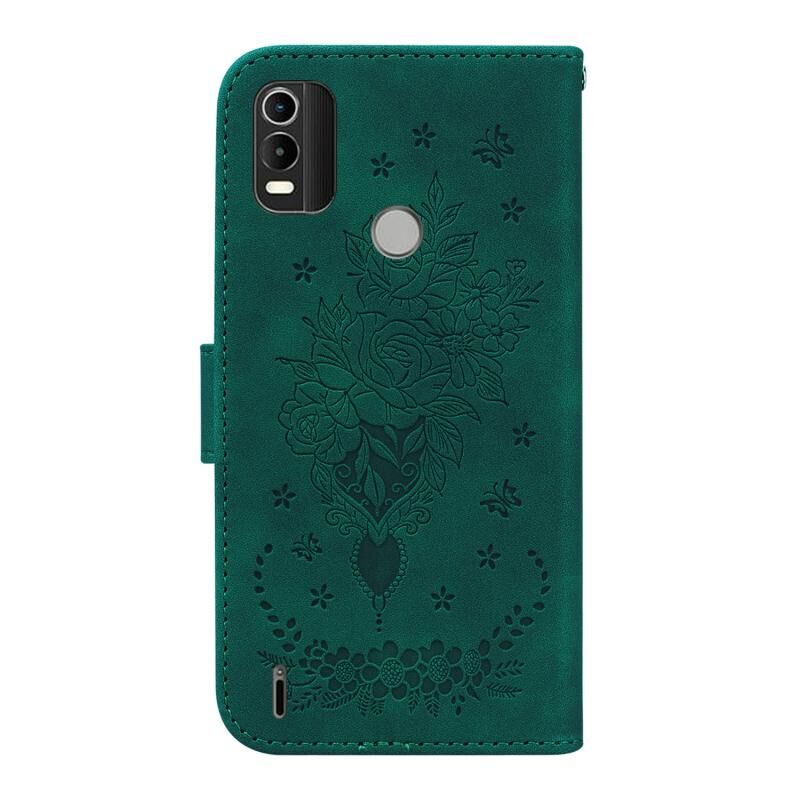 Για Nokia C21 Plus Πεταλούδα Rose ανάγλυφο δέρμα υπόθεση τηλεφώνου (πράσινο)