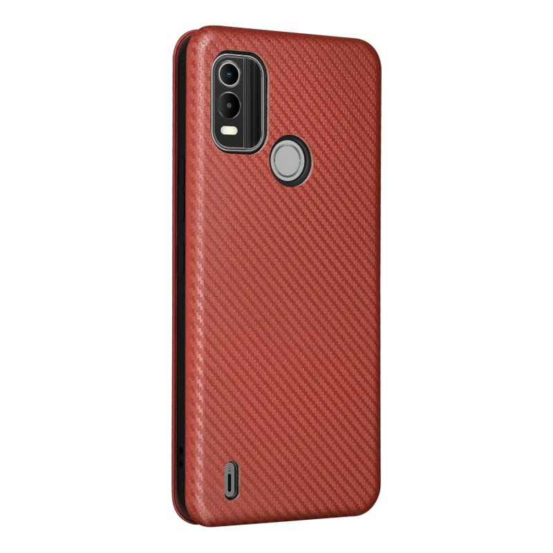 Θήκη τηλεφώνου από δέρμα με υφή ανθρακονήματος για Nokia C21 Plus (Καφέ)