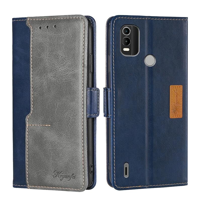 Για Nokia C21 Plus αντίθεση χρώμα πλευρά πόρπη δερμάτινη θήκη τηλεφώνου υπόθεση (μπλε + γκρι)