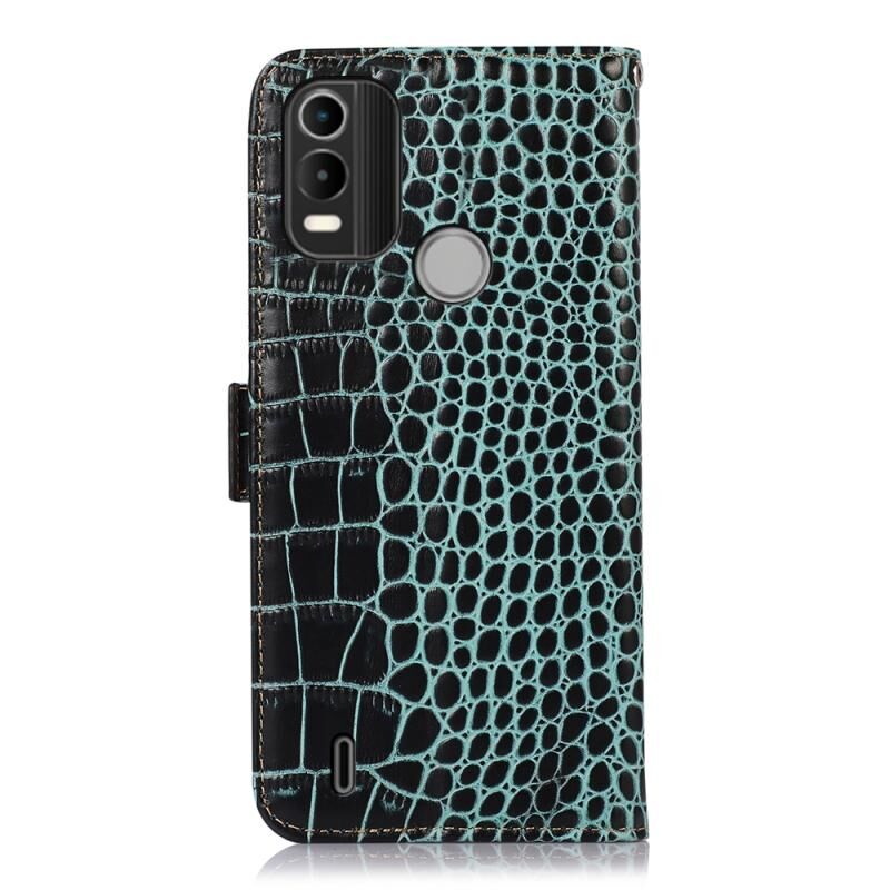 Θήκη τηλεφώνου από γνήσιο δέρμα αγελάδας με επικάλυψη κροκόδειλου για Nokia C21 Plus (Μαύρο)