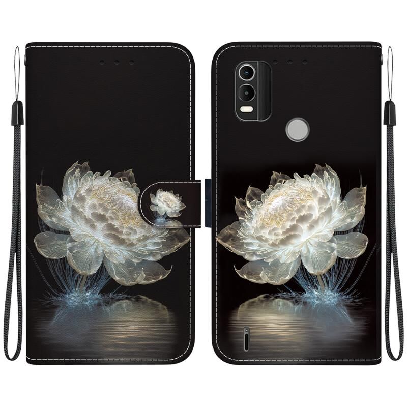 Θήκη τηλεφώνου από δέρμα με πολύχρωμη σχεδίαση κρυστάλλινης υφής για Nokia C21 Plus (Κρυσταλλική Παιώνια)