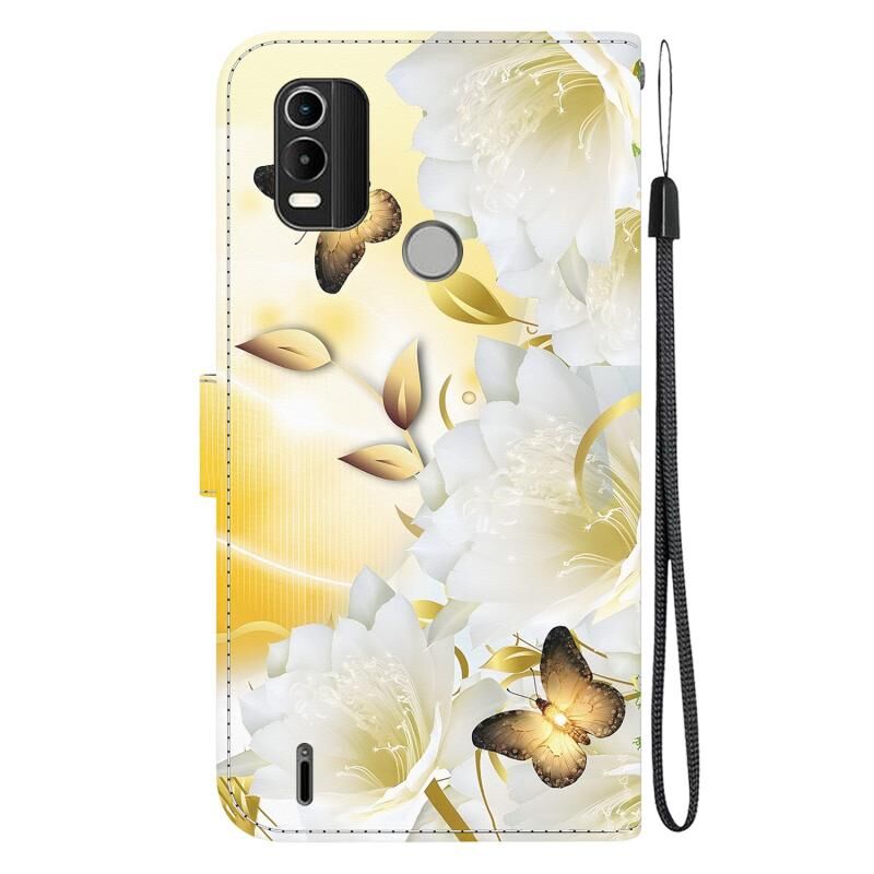 Θήκη τηλεφώνου από δέρμα με πολύχρωμη σχεδίαση κρυστάλλινης υφής για Nokia C21 Plus (Μωβ Παιώνια)