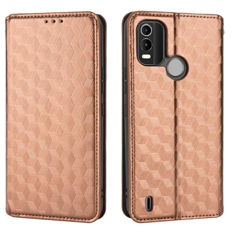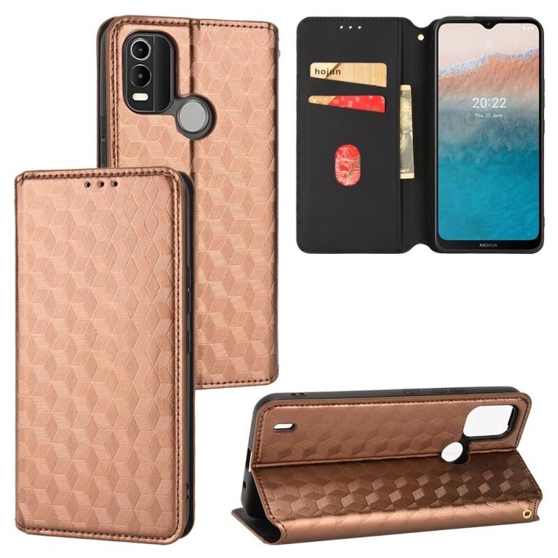 For Nokia C21 Plus Cubic Grid Texture Flip Leather Phone Case(Brown)