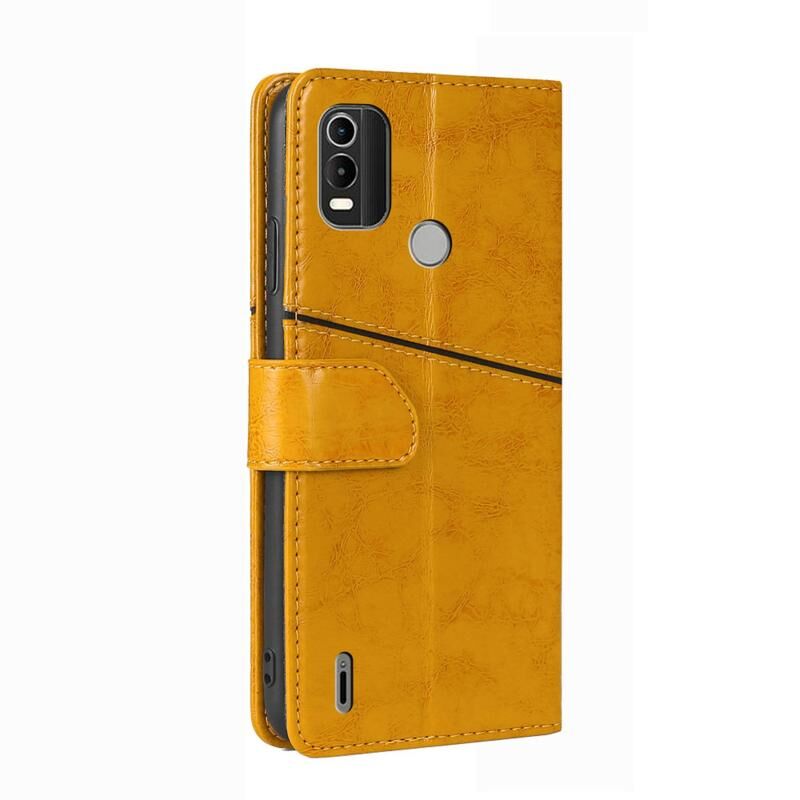 Για το Nokia C21 Plus Γεωμετρική ραφή οριζόντια Flip δερμάτινη θήκη τηλεφώνου (κίτρινο)