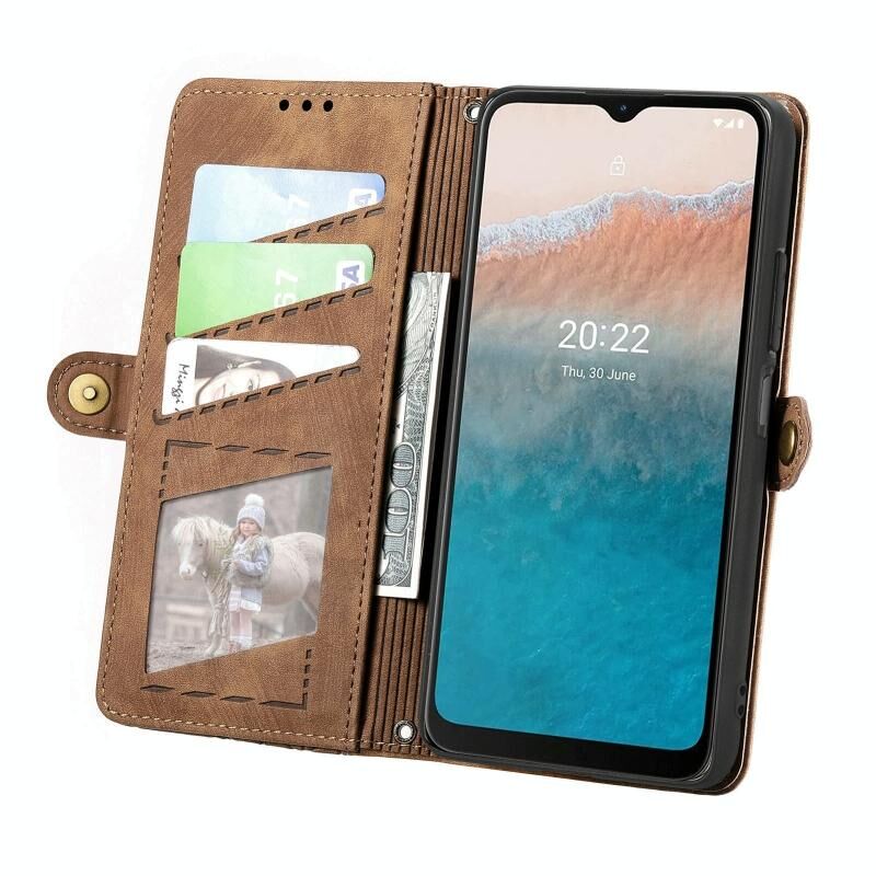Για Nokia C21 Plus γεωμετρική φερμουάρ πορτοφόλι πλευρά πόρπη δερμάτινη θήκη τηλεφώνου (καφέ)