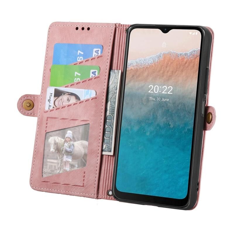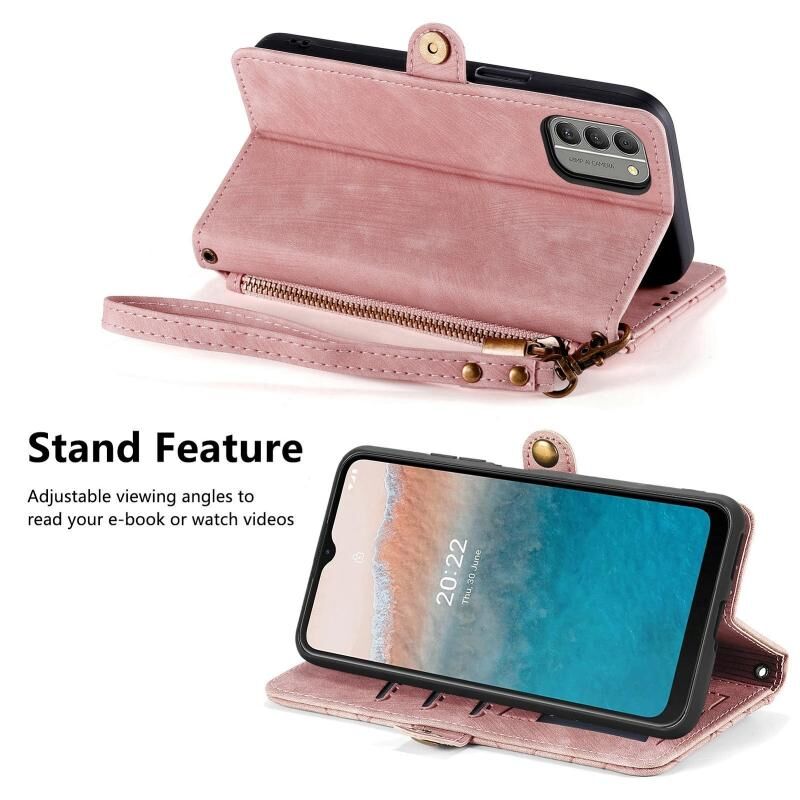 Για Nokia C21 Plus γεωμετρική φερμουάρ πορτοφόλι πλευρά πόρπη δερμάτινη θήκη τηλεφώνου (ροζ)