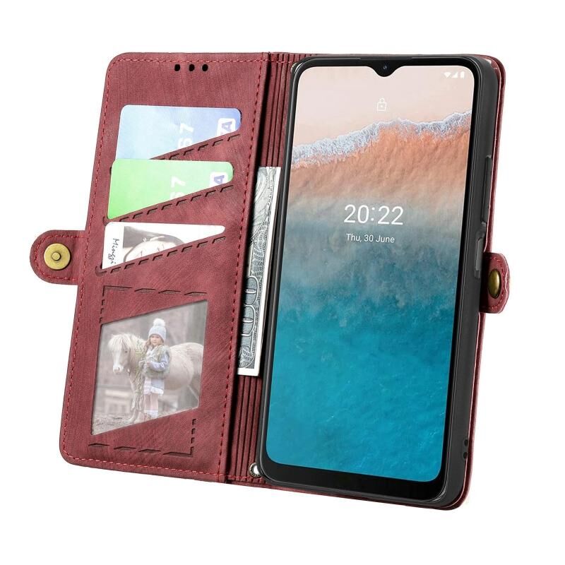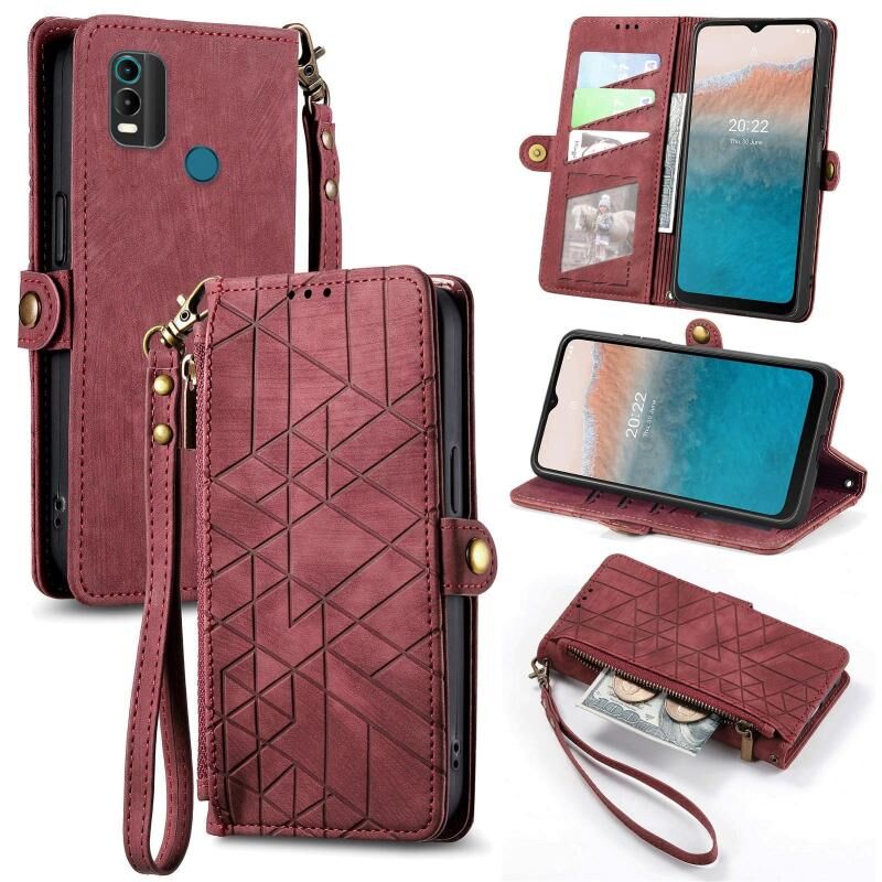 Για Nokia C21 Plus γεωμετρική φερμουάρ πορτοφόλι πλευρά πόρπη δερμάτινη θήκη τηλεφώνου (κόκκινο)