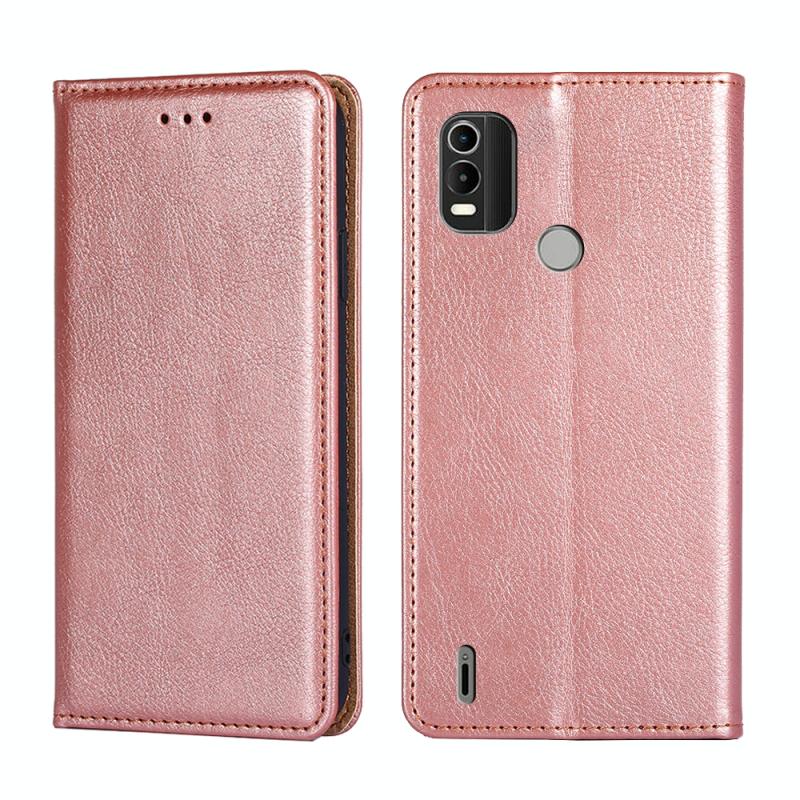 Θήκη τηλεφώνου Nokia C21 Plus, δερμάτινη με μαγνητικό κλείσιμο, γυαλιστερό λάδι, μονόχρωμη (Καφέ)