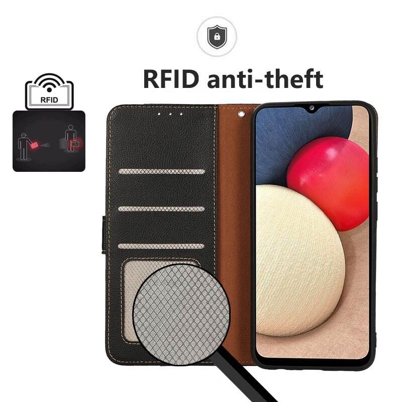 Θήκη κινητού τηλεφώνου Nokia C21 Plus KHAZNEH με υφή δέρματος Litchi και προστασία RFID (Μαύρο)