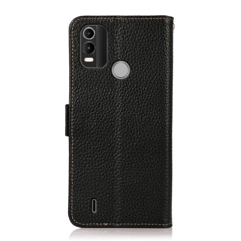 Θήκη τηλεφώνου με μαγνητικό κλείσιμο, γνήσιο δέρμα Litchi, RFID για Nokia C21 Plus KHAZNEH (Μαύρο)