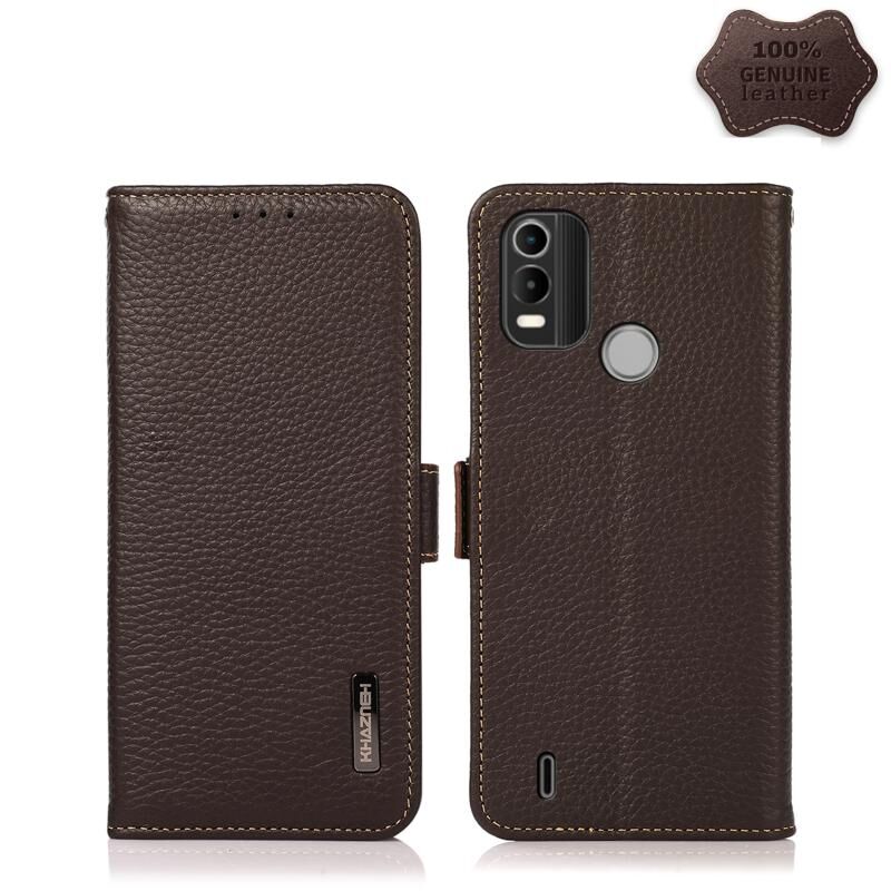 Θήκη τηλεφώνου με μαγνητικό κλείσιμο, γνήσιο δέρμα Litchi, RFID για Nokia C21 Plus KHAZNEH (Μαύρο)
