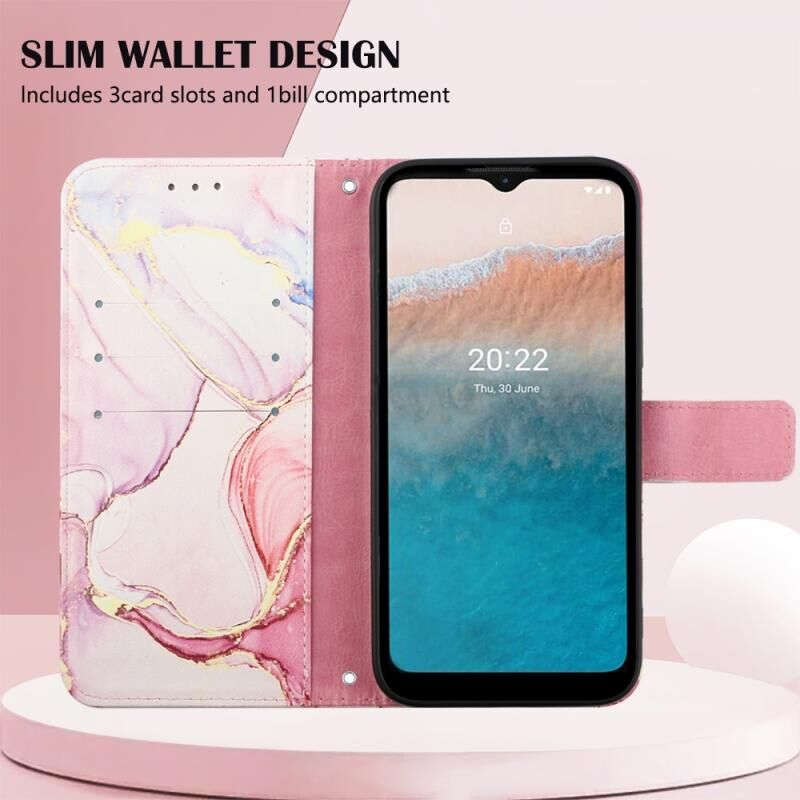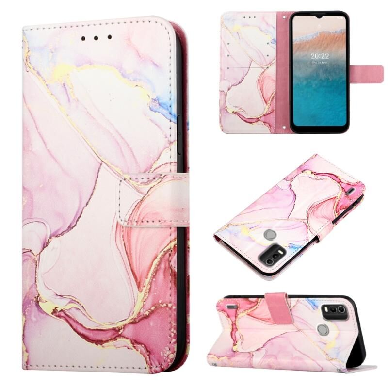 Θήκη τηλεφώνου από δέρμα με σχέδιο μαρμάρου για Nokia C21 Plus PT003 (Ροζ Μωβ Χρυσό LS001)