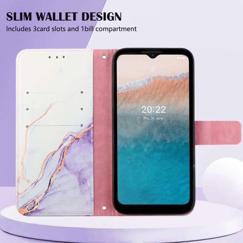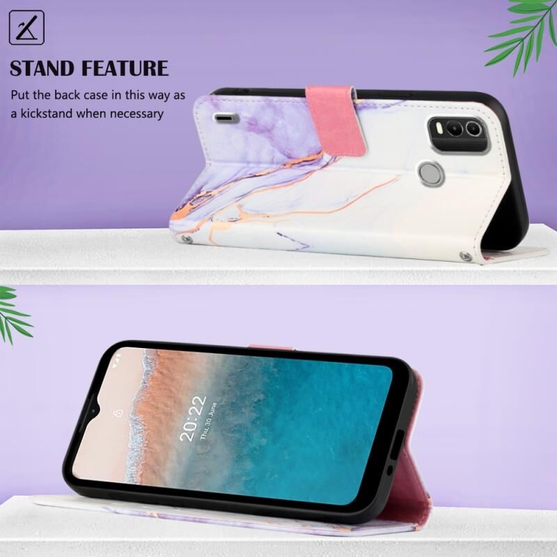Θήκη τηλεφώνου από δέρμα με σχέδιο μαρμάρου για Nokia C21 Plus PT003 (Ροζ Μωβ Χρυσό LS001)