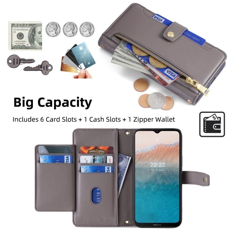 2. Λειτουργία πορτοφολιού πολλαπλών καρτών: Θήκες για κάρτες και διαμέρισμα με φερμουάρ για την αποθήκευση των πιστωτικών σας καρτών, μετρητών ή μικρών σημειώσεων για καθημερινή χρήση.