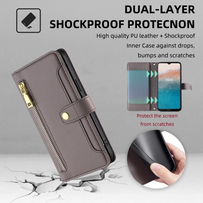 Θήκη τηλεφώνου δερμάτινη με φερμουάρ και σχέδιο προβάτου για Nokia C21 Plus (Μαύρο)