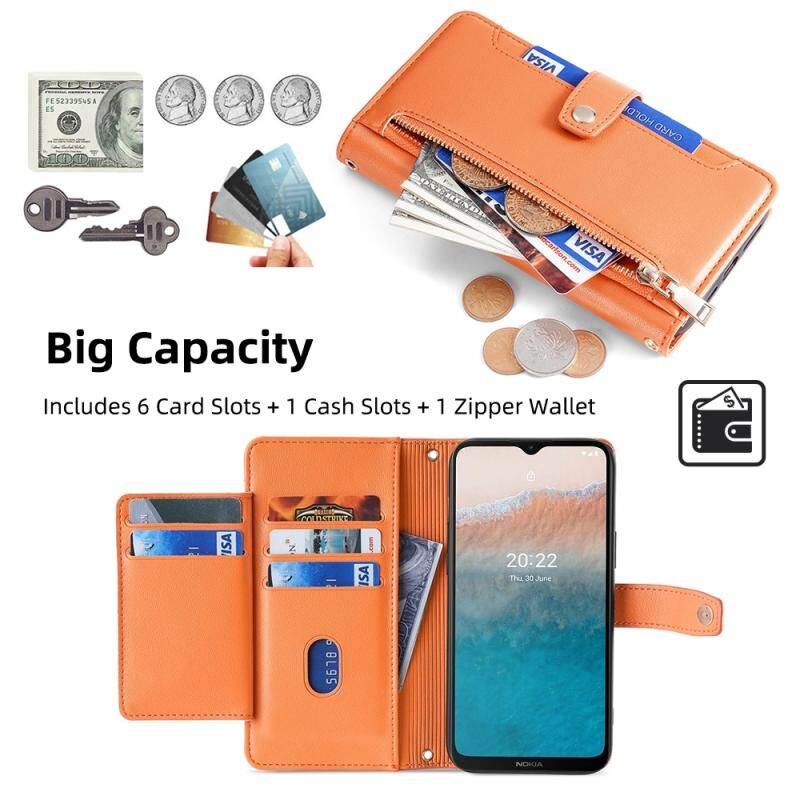 2. Λειτουργία πορτοφολιού πολλαπλών καρτών: Θήκες για κάρτες και διαμέρισμα με φερμουάρ για την αποθήκευση των πιστωτικών σας καρτών, μετρητών ή μικρών σημειώσεων για καθημερινή χρήση.