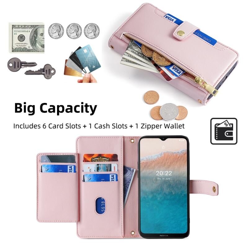 2. Λειτουργία πορτοφολιού πολλαπλών καρτών: Θήκες για κάρτες και διαμέρισμα με φερμουάρ για την αποθήκευση των πιστωτικών σας καρτών, μετρητών ή μικρών σημειώσεων για καθημερινή χρήση.