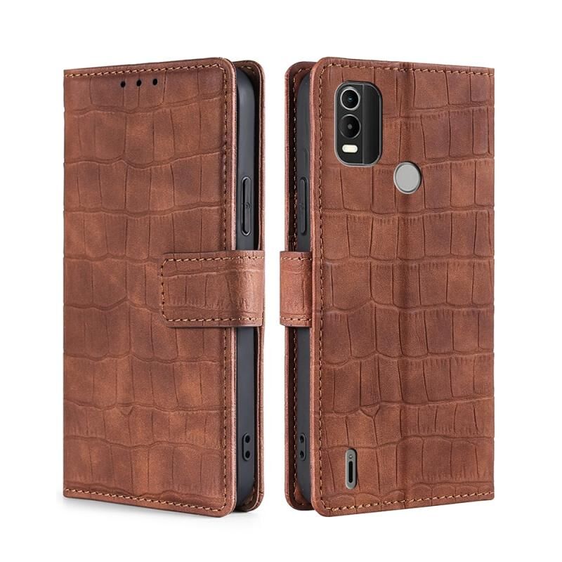 Θήκη τηλεφώνου δερμάτινη με μαγνητικό κούμπωμα και υφή κροκόδειλου για Nokia C21 Plus (Μαύρο)