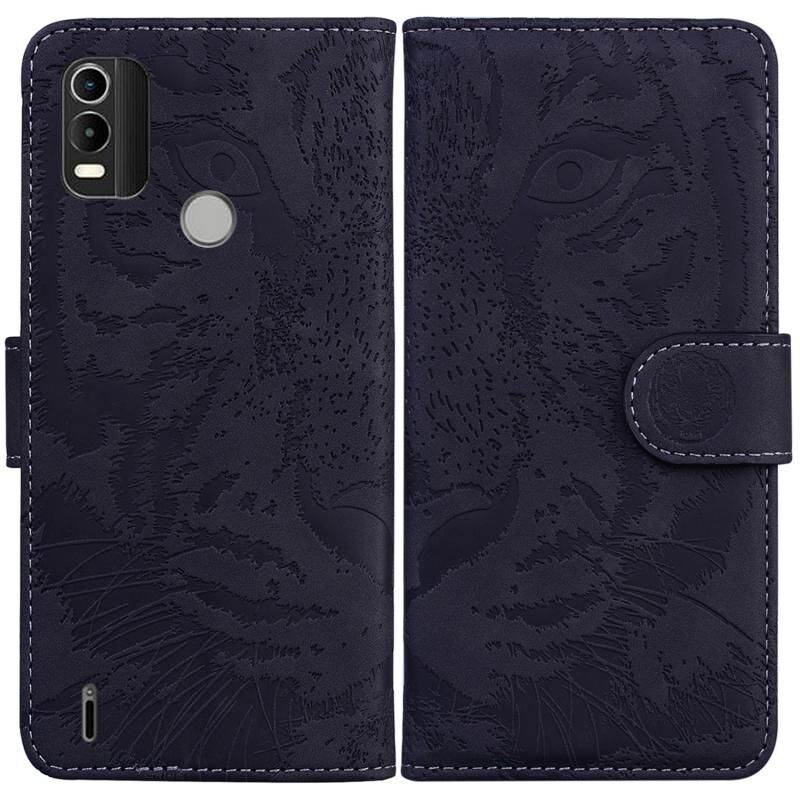 Για το Nokia C21 Plus Tiger ανάγλυφο μοτίβο οριζόντια Flip δέρμα τηλέφωνο υπόθεση (μαύρο)