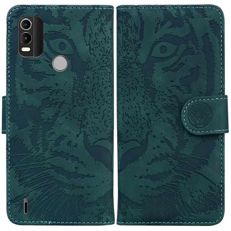 Για το Nokia C21 Plus Tiger ανάγλυφο μοτίβο οριζόντια Flip δέρμα τηλέφωνο υπόθεση (πράσινο)