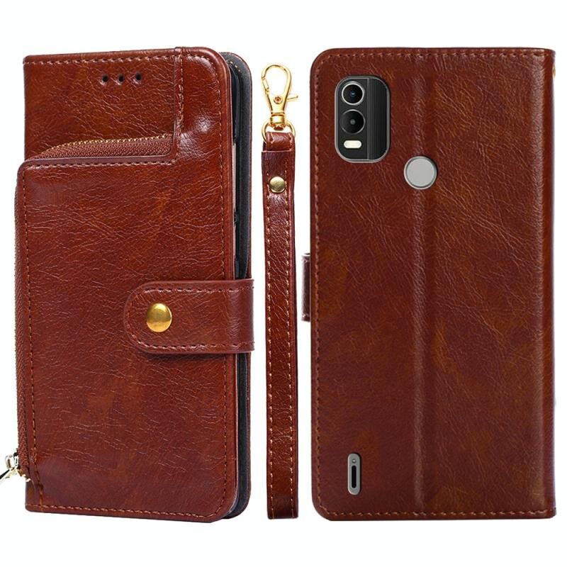 Για το Nokia C21 Plus φερμουάρ τσάντα PU + TPU οριζόντια Flip δέρμα τηλέφωνο υπόθεση (καφέ)