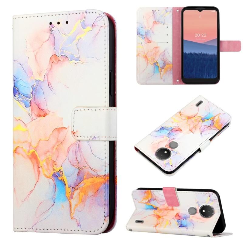 Θήκη τηλεφώνου από δέρμα με σχέδιο μάρμαρου για Nokia C21 PT003 (Λευκό μάρμαρο Galaxy LS004)
