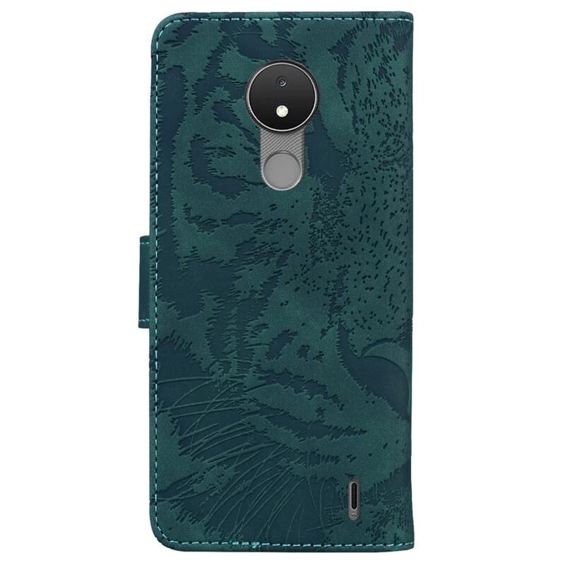 Θήκη τηλεφώνου από δέρμα με οριζόντιο άνοιγμα για Nokia C21 με ανάγλυφο μοτίβο τίγρης (Μαύρο)