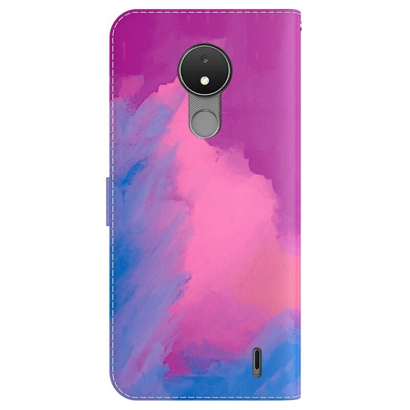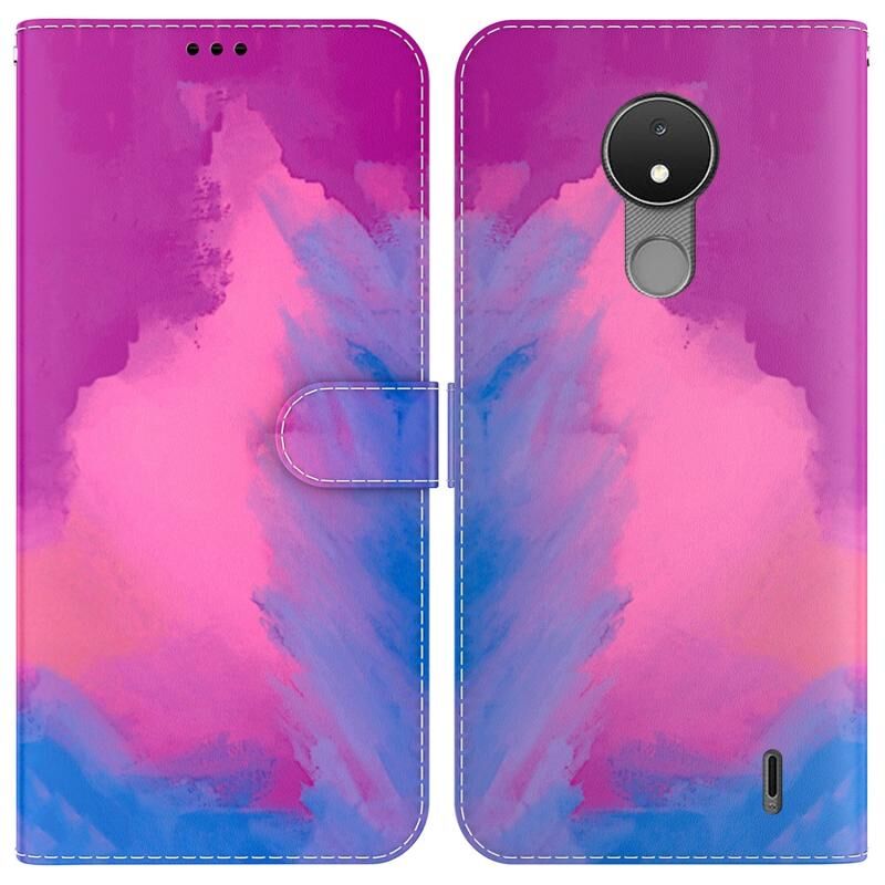 Για το Nokia C21 Υδατογραφία μοτίβο οριζόντια Flip δέρμα τηλέφωνο υπόθεση (μοβ κόκκινο)