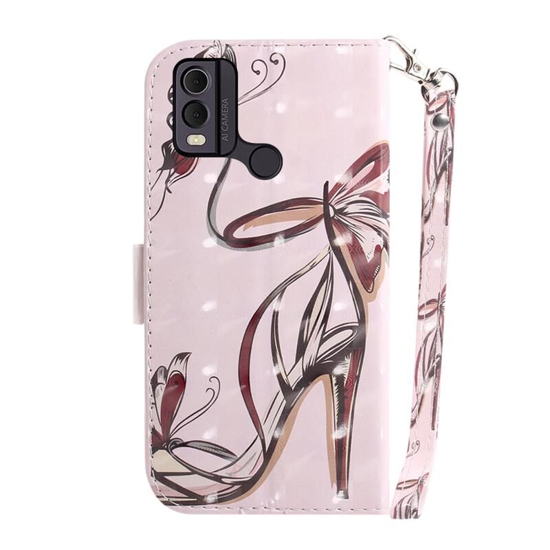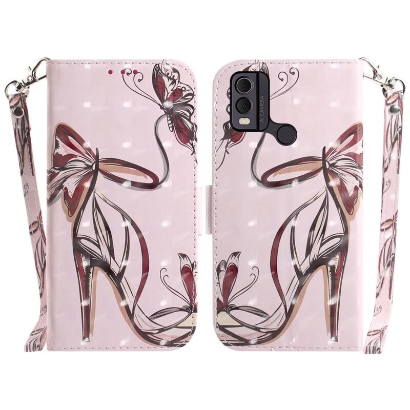 Θήκη τηλεφώνου δερμάτινη, οριζόντια, αναδιπλούμενη, με τρισδιάστατο έγχρωμο σχέδιο για Nokia C22 (πεταλούδα με ψηλοτάκουνα).