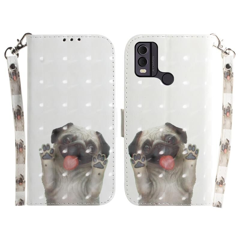 Θήκη τηλεφώνου δερμάτινη, οριζόντια, αναδιπλούμενη, με έγχρωμο 3D σχέδιο (Pug) για Nokia C22.