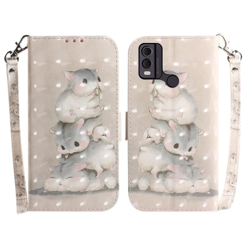 Θήκη τηλεφώνου δερμάτινη, οριζόντια, αναδιπλούμενη, με έγχρωμα 3D σχέδια για Nokia C22 (Σκιουράκια)