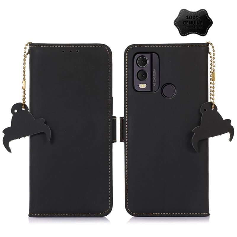 Θήκη τηλεφώνου από γνήσιο δέρμα με μαγνητικό κλείσιμο RFID για Nokia C22 4G (Μαύρο)