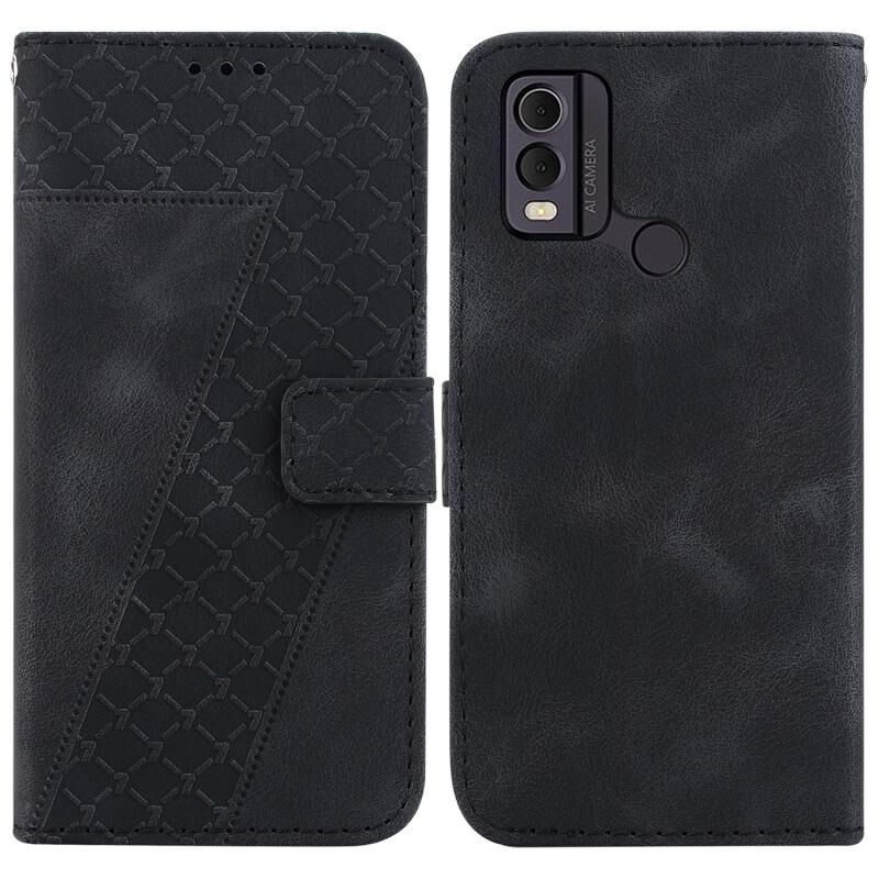 Για Nokia C22 7-σχήμα ανάγλυφη δερμάτινη θήκη τηλεφώνου (μαύρο)