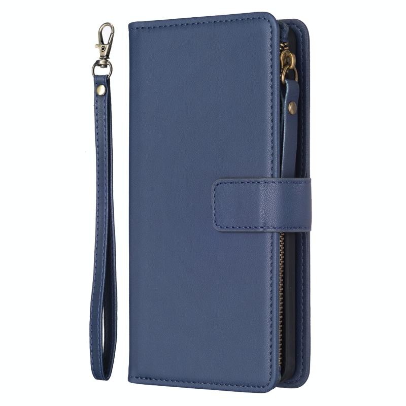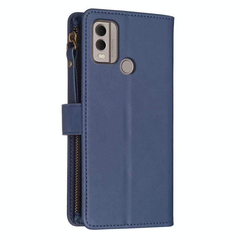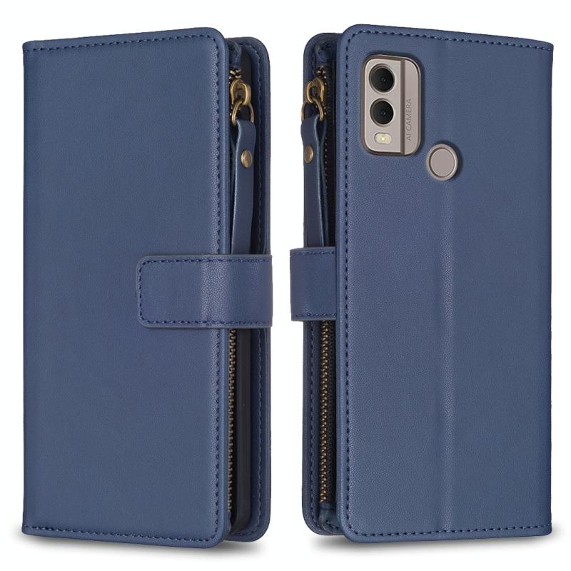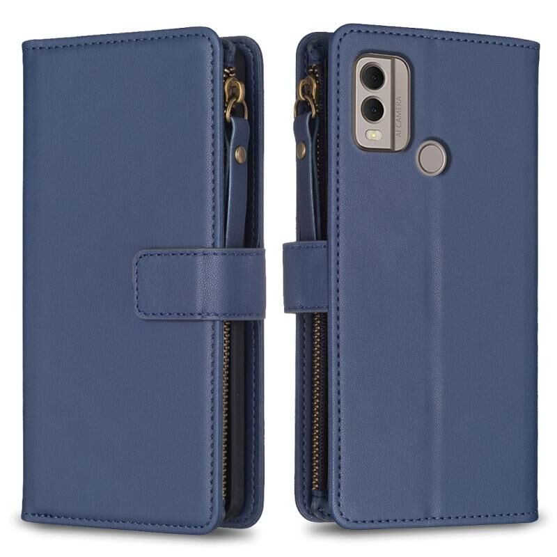 Θήκη κινητού τηλεφώνου με φλπ από δέρμα με φερμουάρ και 9 θήκες καρτών για Nokia C22 (Μπλε)