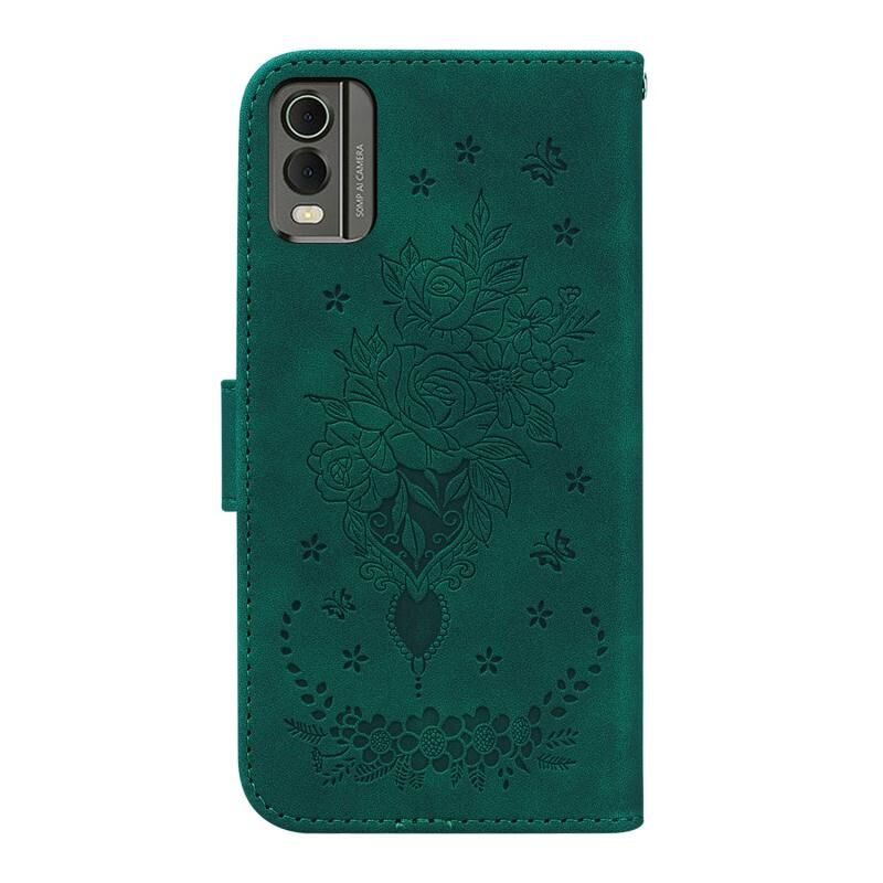Για Nokia C22 Πεταλούδα Rose ανάγλυφη δερμάτινη θήκη τηλεφώνου (πράσινο)