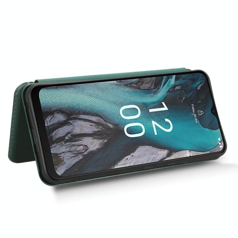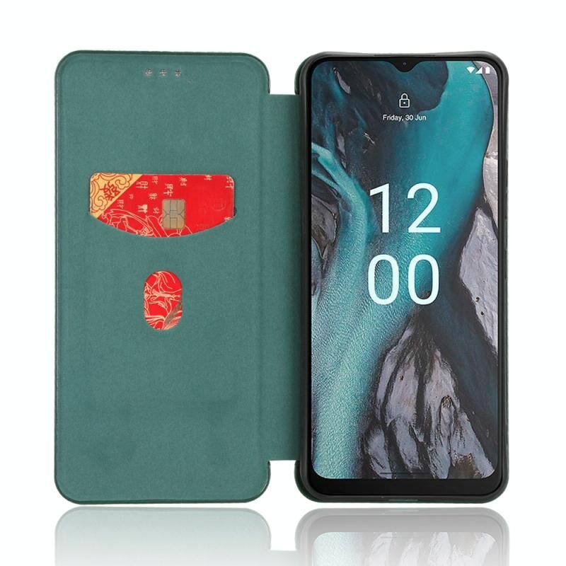 Για Nokia C22 Carbon Fiber Texture Flip δέρμα τηλέφωνο υπόθεση (πράσινο)