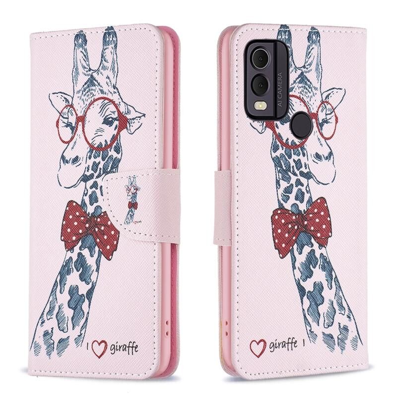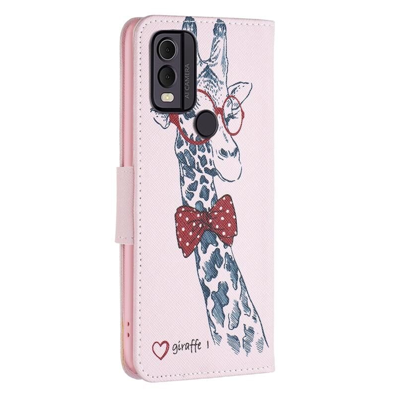 Θήκη τηλεφώνου δερμάτινη με σχέδιο πολύχρωμου ζωγραφικού μοτίβου για Nokia C22 (Καμηλοπάρδαλη)