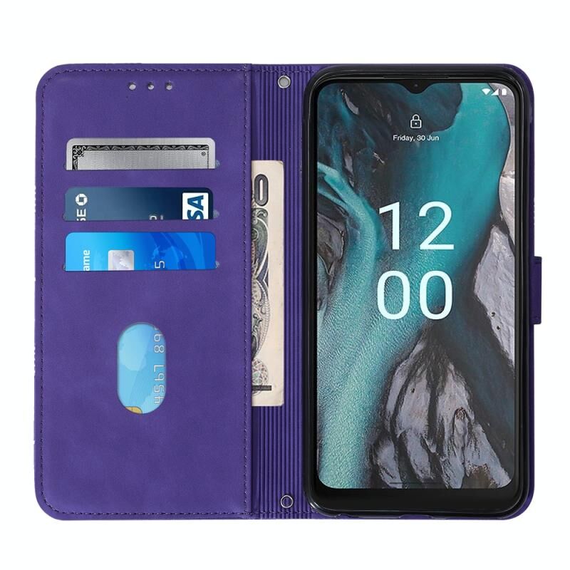Για Nokia C22 Crossbody 3D ανάγλυφο Flip υπόθεση τηλεφώνου δέρμα (μωβ)