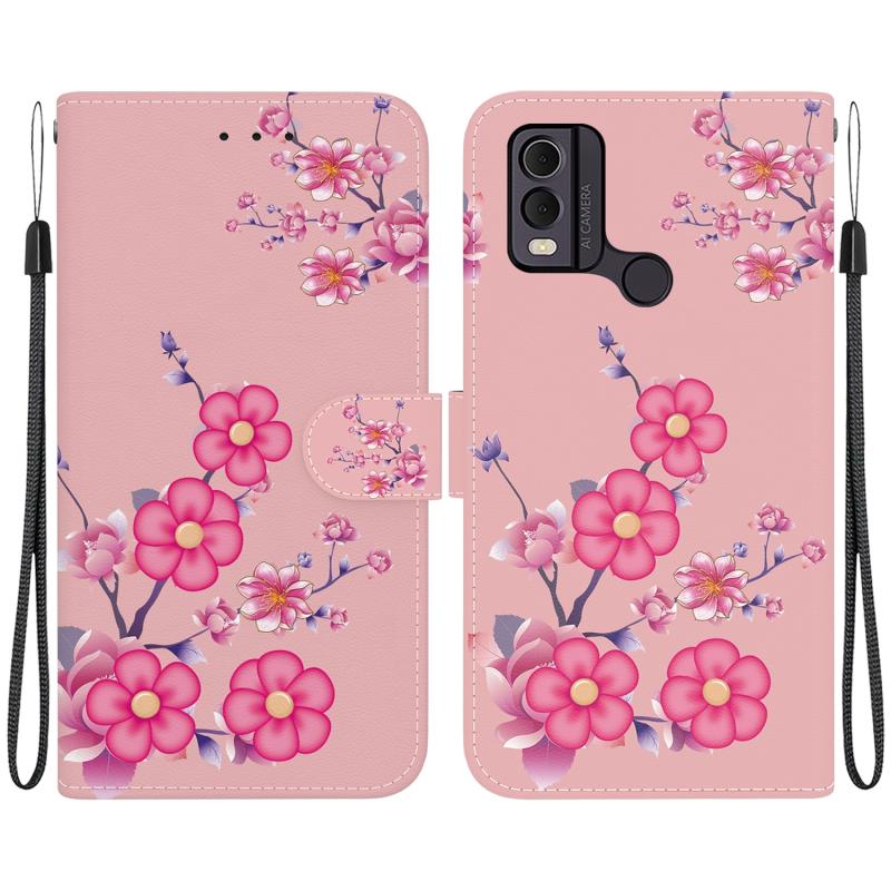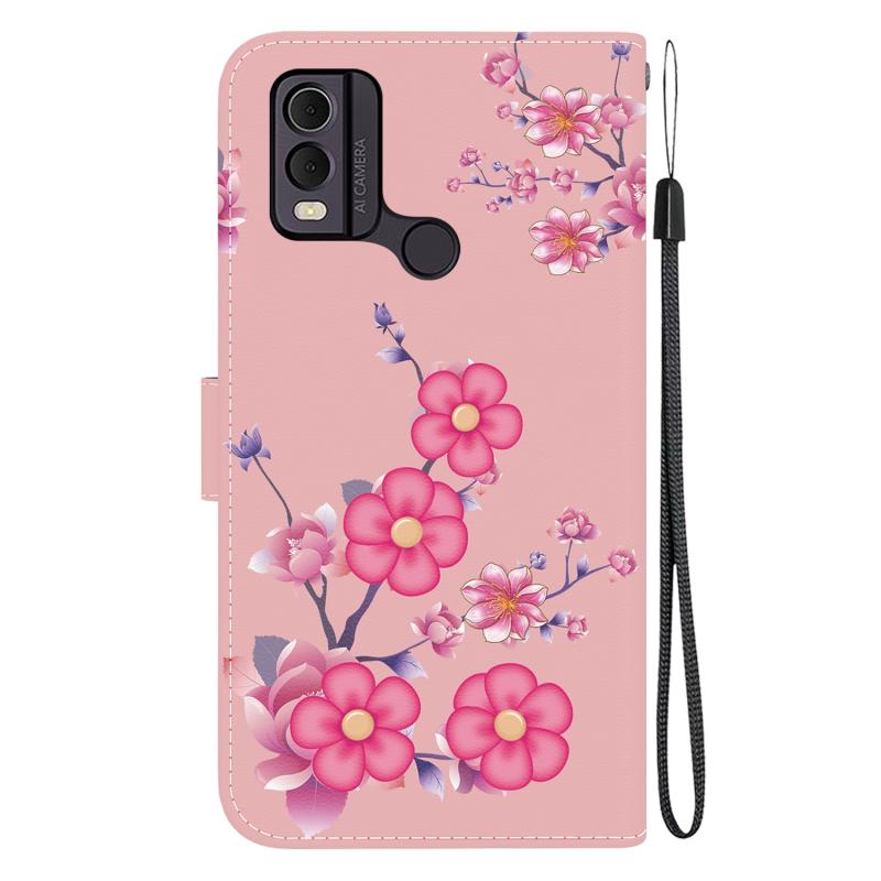 Θήκη τηλεφώνου Nokia C22 με κρυστάλλινη υφή, πολύχρωμο σχέδιο δέρματος (Λουλούδια κερασιάς)