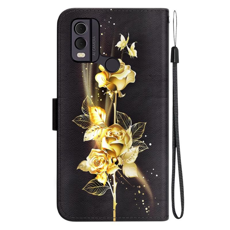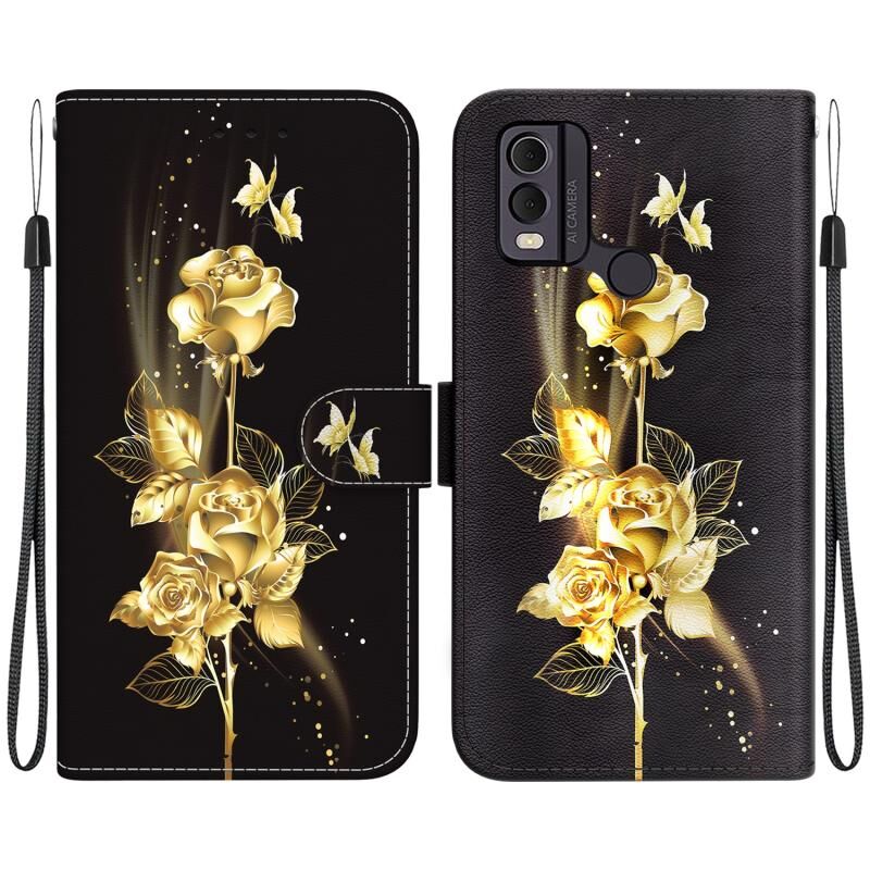 Θήκη τηλεφώνου Nokia C22 με κρυστάλλινη υφή, πολύχρωμο σχέδιο από δέρμα (Μωβ Παιώνια)