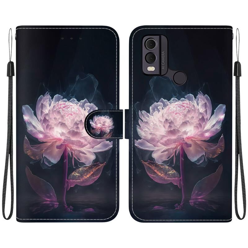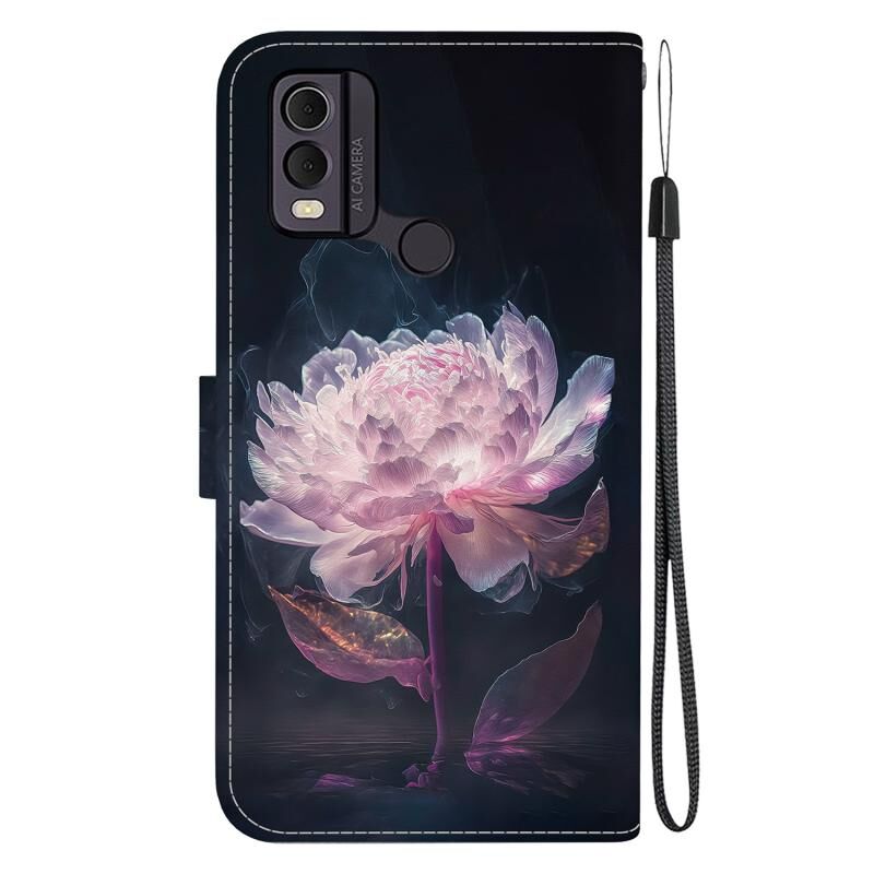 Θήκη τηλεφώνου Nokia C22 με κρυστάλλινη υφή, πολύχρωμο σχέδιο από δέρμα (Μωβ Παιώνια)