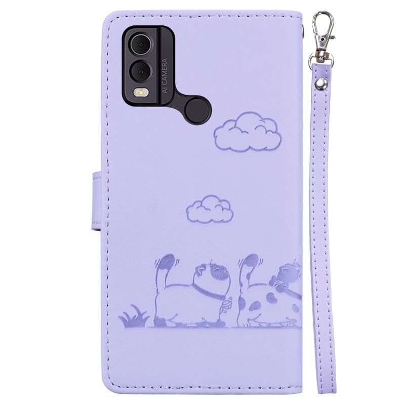 Θήκη τηλεφώνου Nokia C22 Cute Cats RFID από δέρμα (Χρυσό Ρόδι)