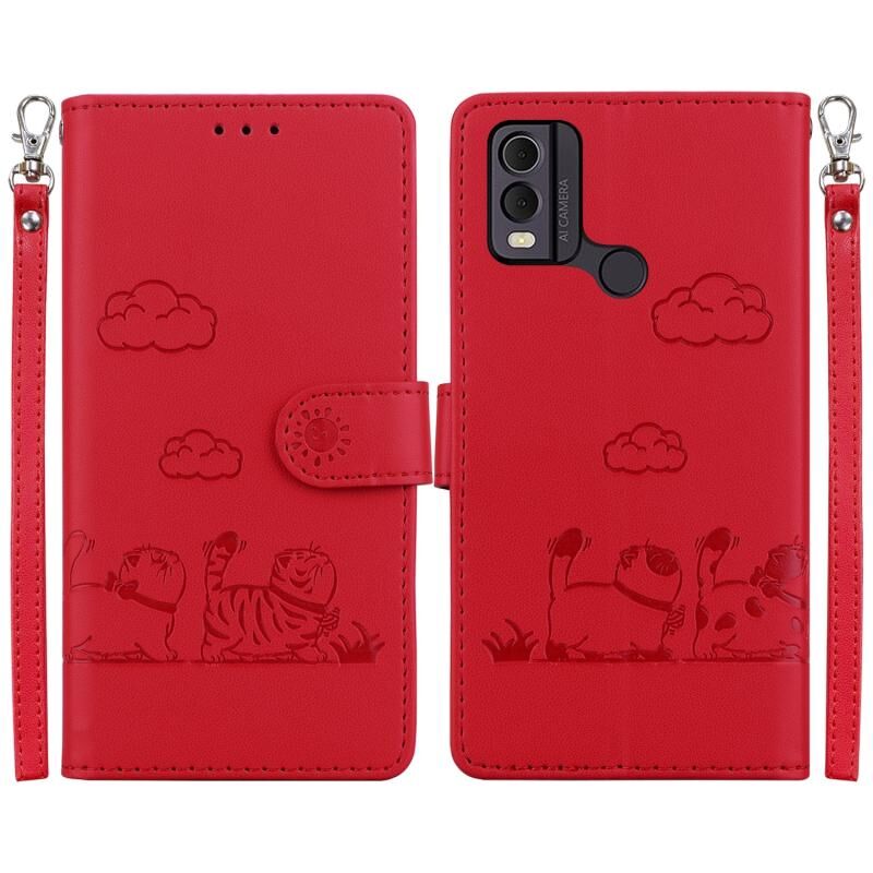 Θήκη τηλεφώνου Nokia C22 Cute Cats RFID από δέρμα (Χρυσό Ρόδι)