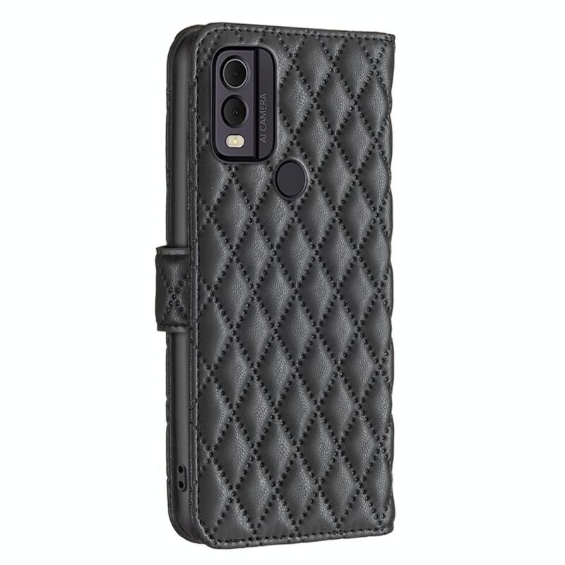 Για το Nokia C22 Diamond Lattice πορτοφόλι Flip δέρμα τηλέφωνο υπόθεση (Μαύρο)